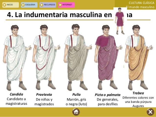 VESTIMENTA MASCULINA Los trajes de la Antigua Roma tenían